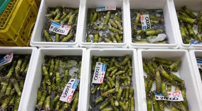 Pungent green wasabi is the green condiment with a kick that you probably use come sushi time. It's most easily found in powdered or paste form usually eaten in small amounts with sushi and sashimi.