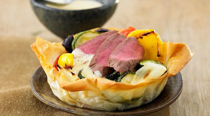 This gourmet lamb recipe is a fascinating blend of ratatouille, tender lamb and rosemary sabayon.