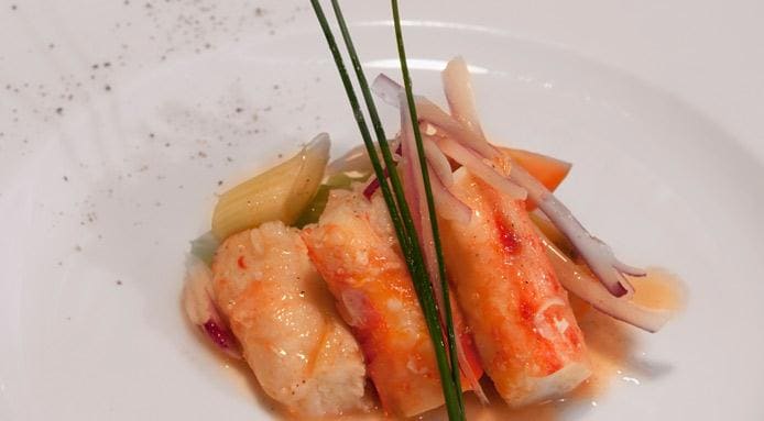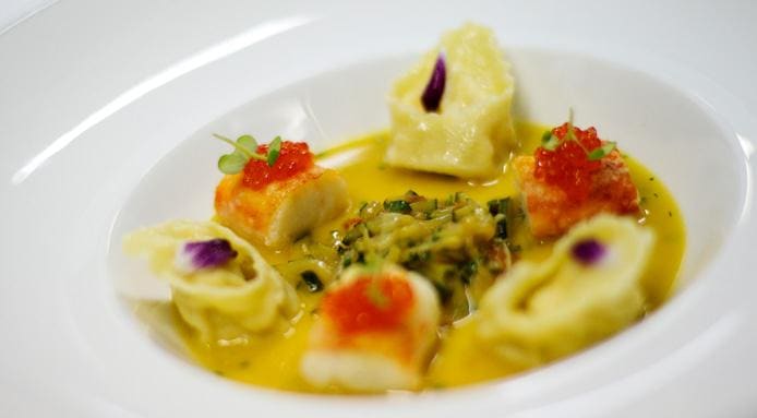 Chef Anatoly Komm from Moscow takes varenyky (traditional Russian dumplings) to the next level, with a delicate crab stuffing set on a white wine sauce.