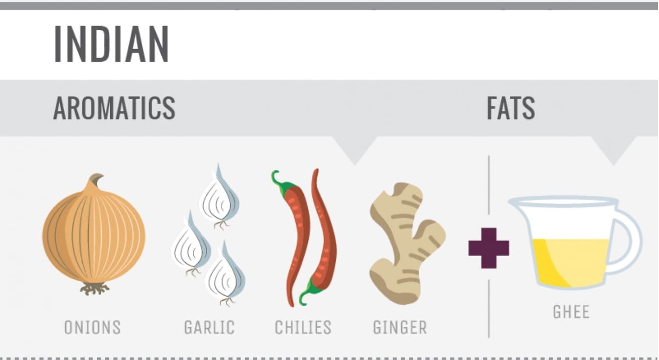 It breaks down a number of different types of cuisine and explains the key aromatics needed to cook them.