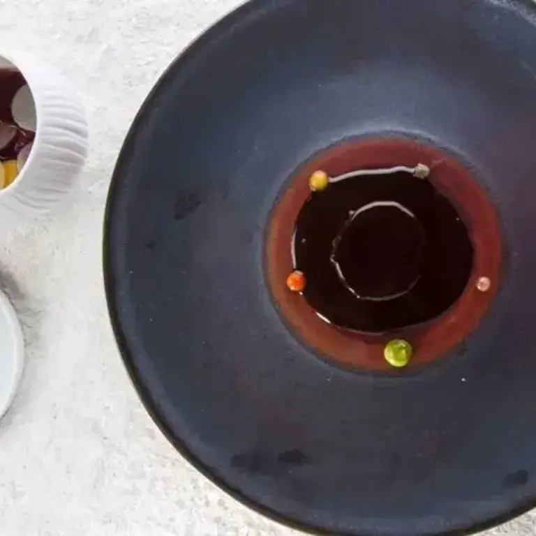 3. Zuppa Inglese: cold and hot chocolate custard, pasta, alchermes. Bottura's take on the Italian dessert, itself an Italian tribute to English trifle, with origins in the sixth century when the Duke of Este Ferrara asked for a recreation of the trifle he enjoyed at the Elizabethan Court.