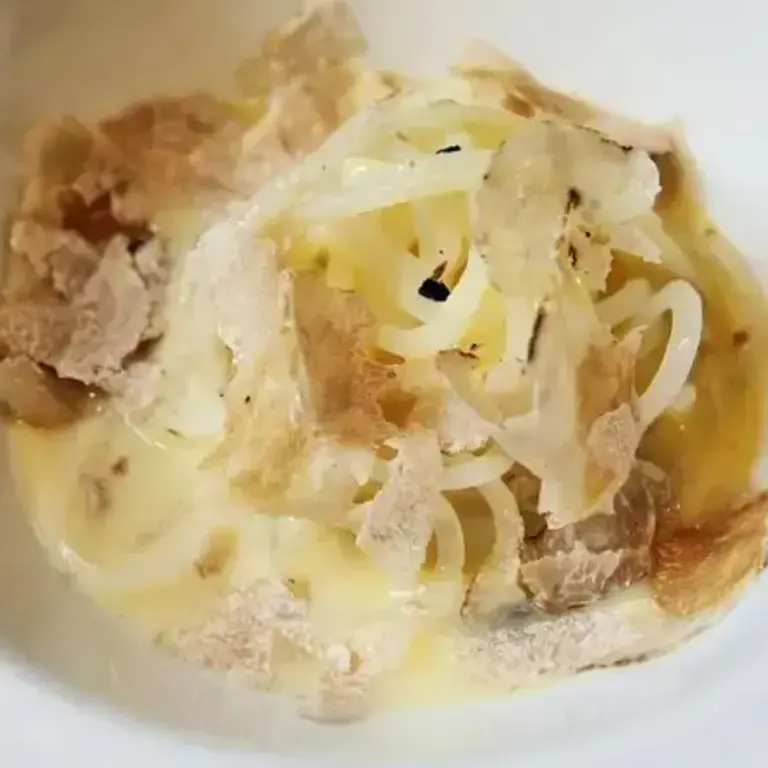 4. 'But it Couldn't Wait so it Became a Spaghetto' – potato 'spaghetti' with ham broth, bacon and white Alba truffle (Identità Golose New York, 2013).