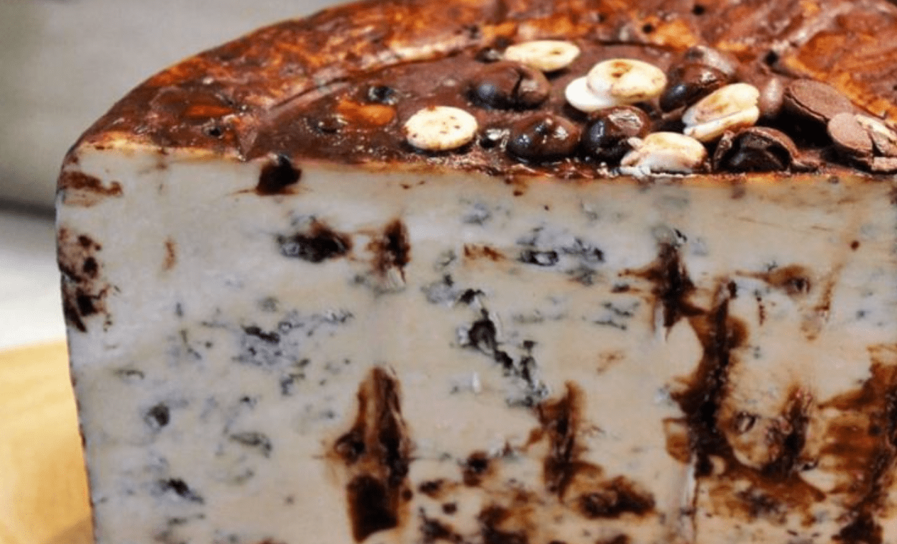 It’s a blue cheese that’s been lathered in chocolate liquor and topped with cocoa powder and chocolate chips - and we’re really not sure what to think.