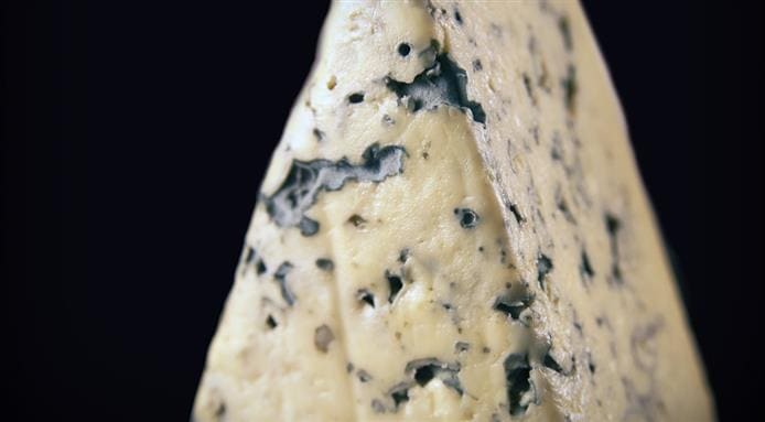 Legend has it that the first blue cheese was discovered by accident near Roquefort, France, when a shepherd was in a cave snacking on cheese made from sheep’s milk. The story goes that he abandoned his meal after spying a beautiful maiden outside. When he came back months later, the cheese was shot through with the now emblematic blue-cheese penicillin mould.