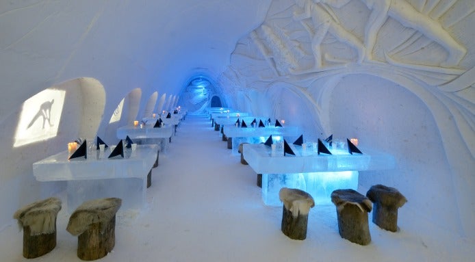 Next time the summer heat gets you down, consider booking an evening at the Snow Castle restaurant in Finland. The Snow Castle offers the unique experience of staying at a hotel and dining in a restaurant completely made of snow.