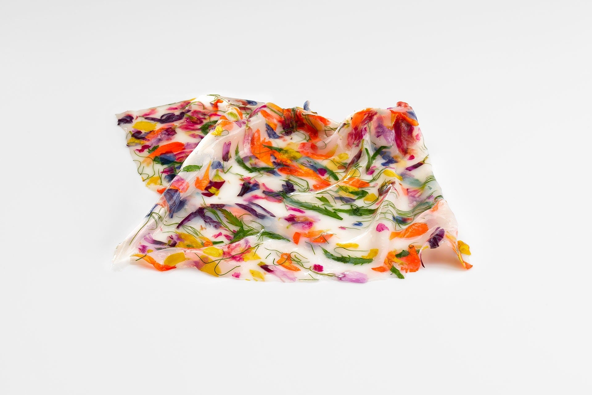 Do you think the Mugaritz boss wants you to swallow a scarf? Not really. “Regarding the technical aspect of this dish, it is a crushed fresh squid, mixed with a bouquet of seasonal flowers, flattened into a transparent sheet, cooked at low temperature. It is drizzled with sake, using a smudger. With this creation, our vocation is to suspend a moment in our garden in a matrix, taking advantage of its flowers to make this squid-based scarf, which visually resembles a silk scarf."