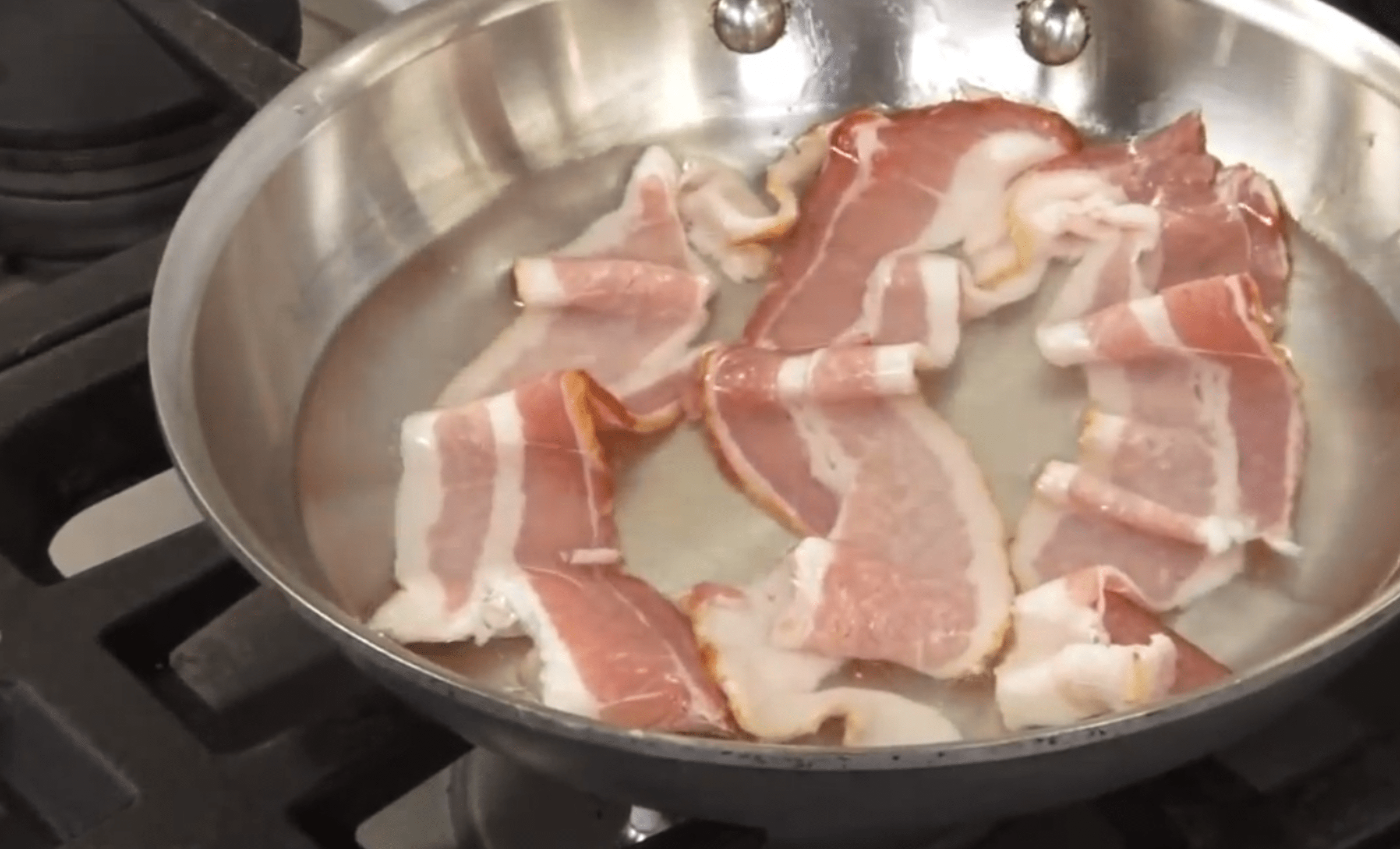 The trick involves using water to slow down the cooking process and allow the bacon to retain its moisture.
