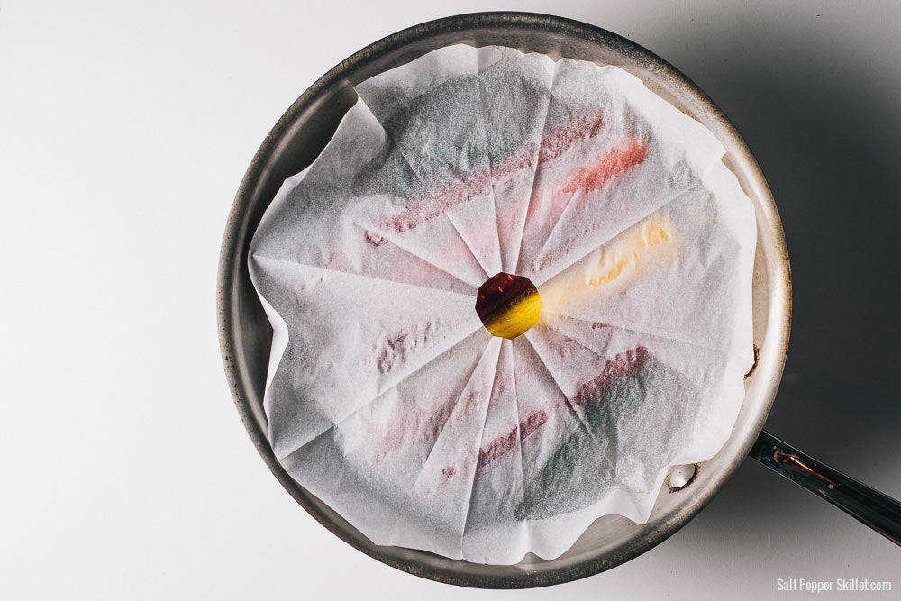 It's a lid made using parchment paper to cover a saute pan, perfect for when you want to control heat and evaporation during simmering or poaching.