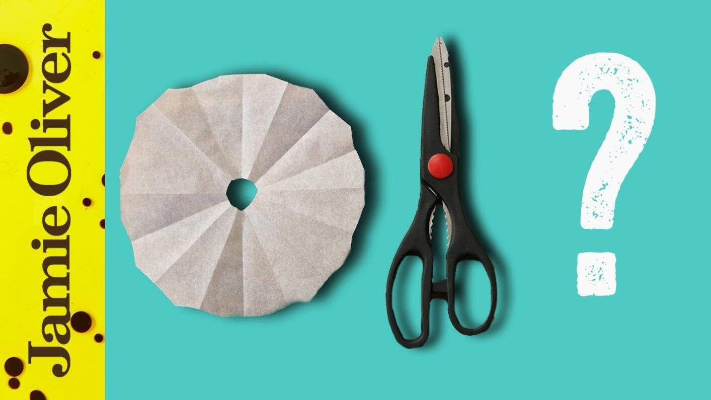 To make a cartouche, all you'll need is some parchment or greaseproof paper and some scissors.