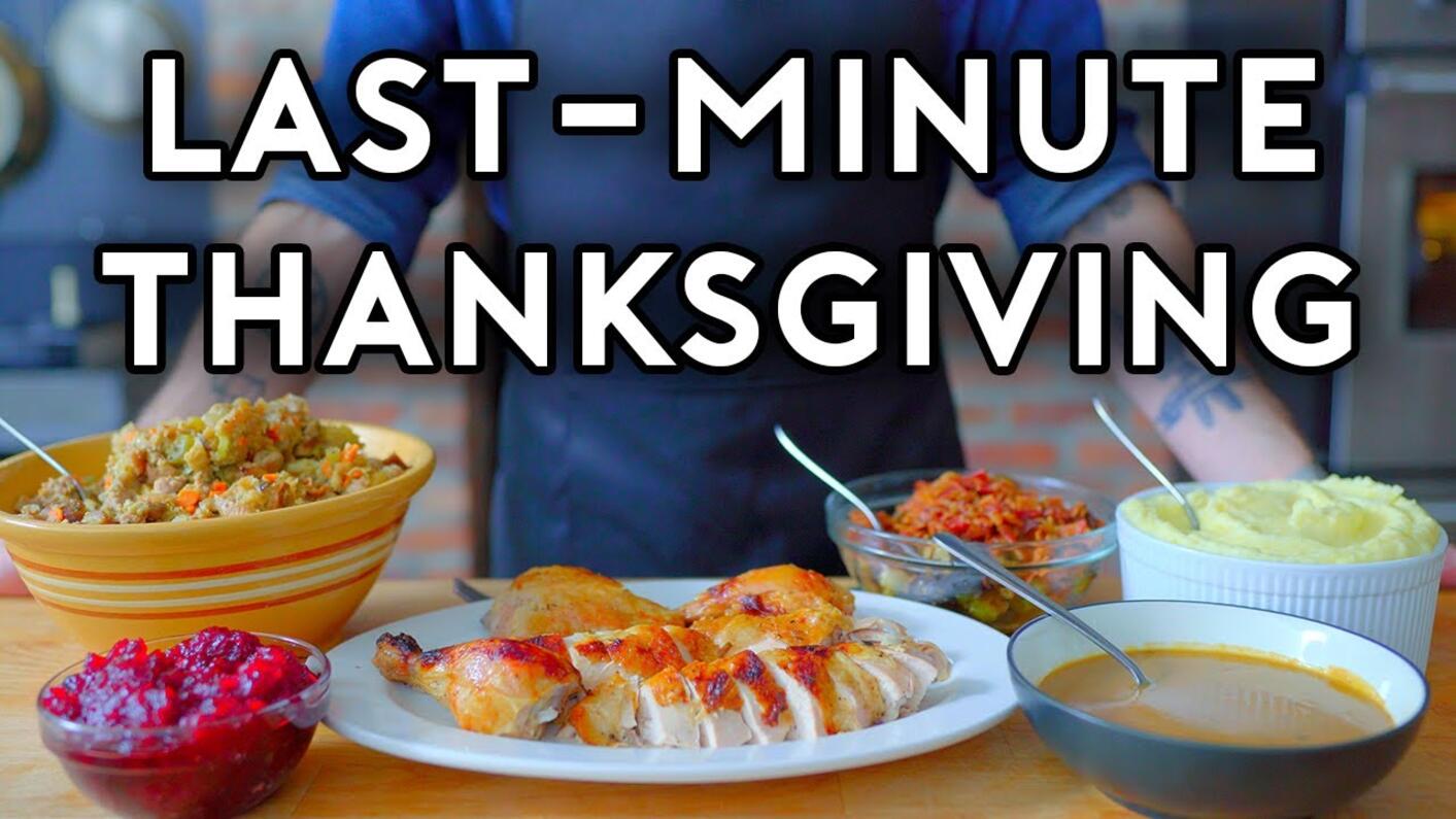 Jacques Pépin makes his stuffing with onion, corn and mushroom dumped in the stock and warmed to combine. The mixture goes onto a packaged cornbread stuffing mix (why not?) and is roasted in the oven until crisp.