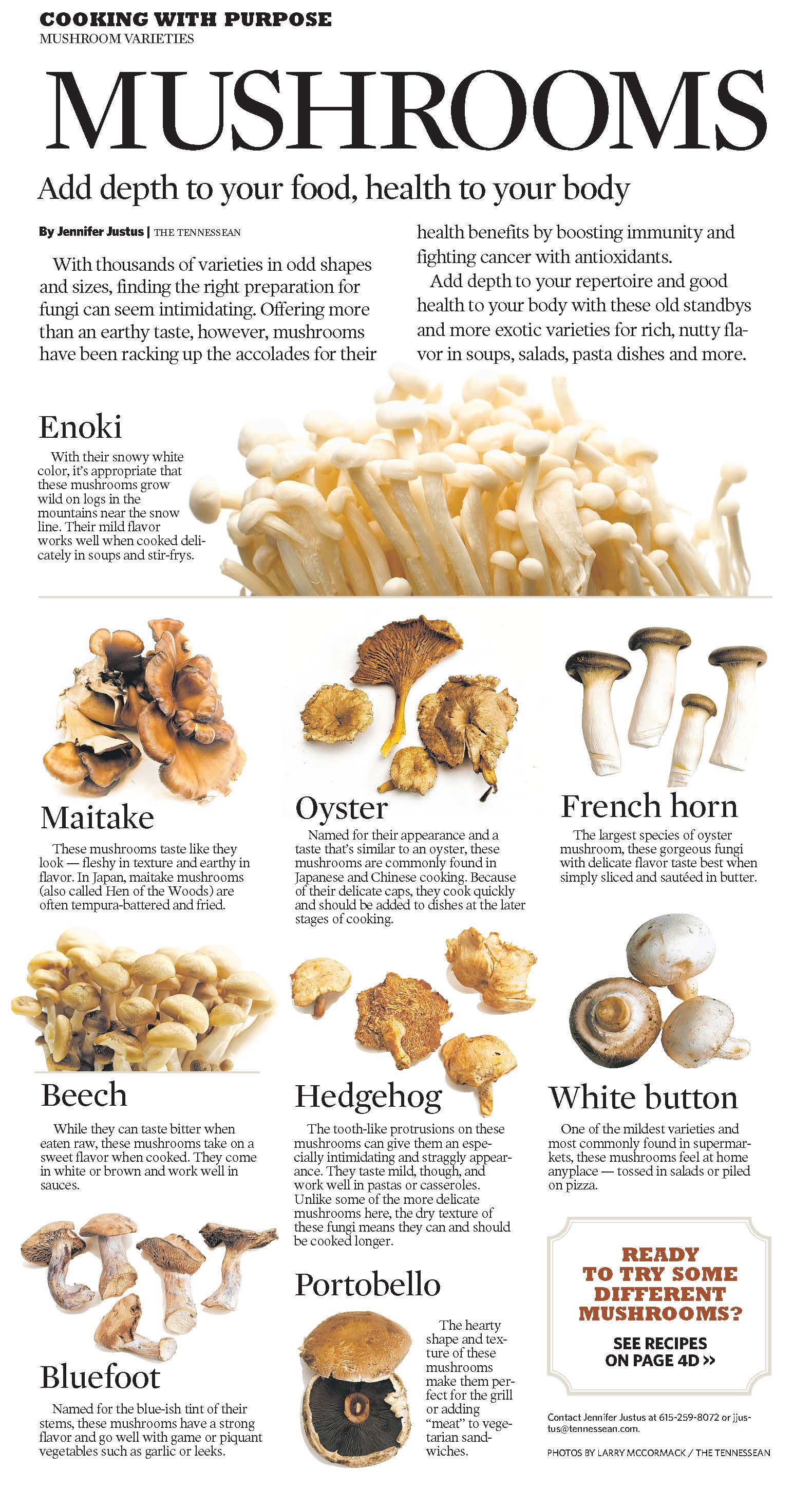 They look at a range of different mushrooms with pictures of each one and information on how to cook with them.