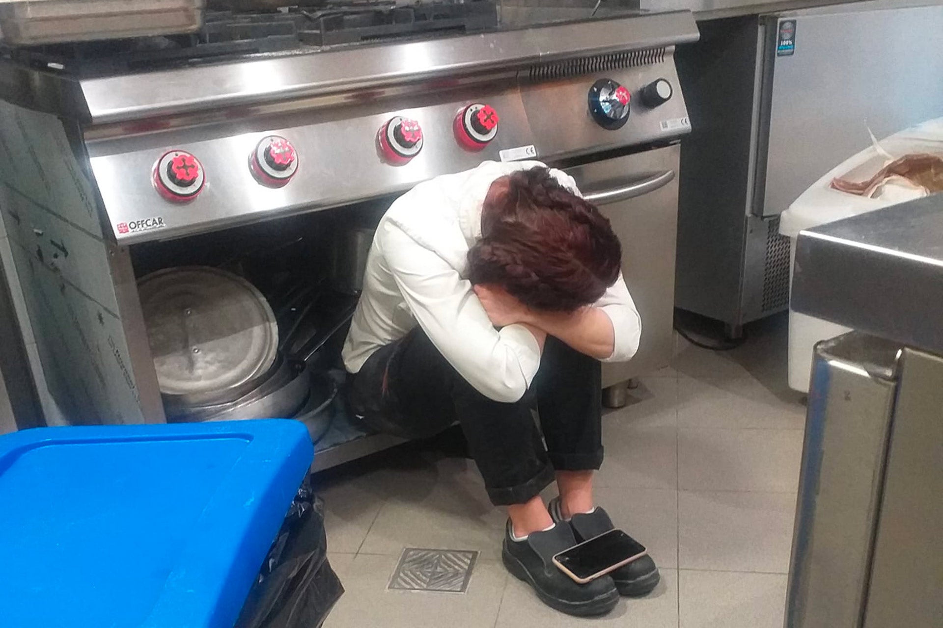 It's not the first time a photo of a chef sitting in the kitchen has struck a chord with the world - the image below went viral a couple of years ago and sparked a huge debate about kitchen culture.