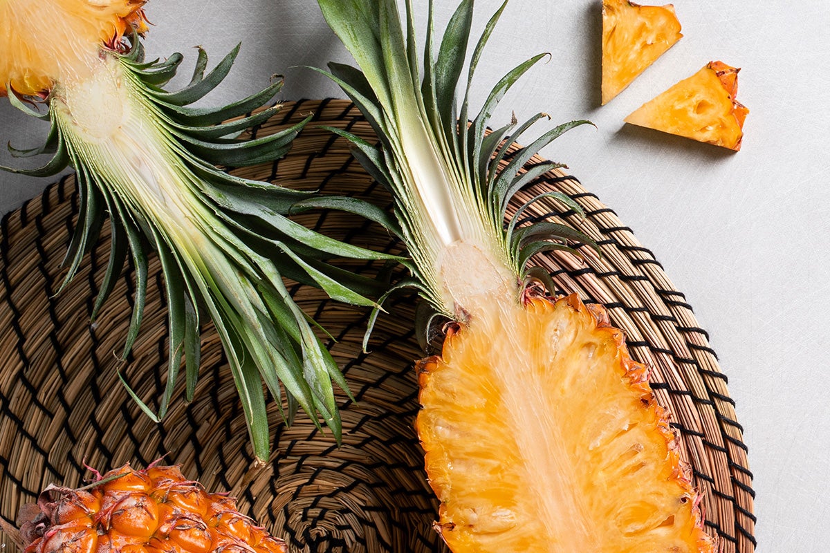 The fruit is marketed as the “most exclusive and high-end pineapple, Available in only a select few retailers, it has been referred to as an ‘ultrapremium luxury designer fruit.’” The fruit is sold without its head and leaves and set in a presentation case, more reminiscent of a Fabergé egg than a store-bought pineapple. It is the result of 15 years of research; grown in Costa Rica it is a cross between a traditional pineapple and a morada pineapple.