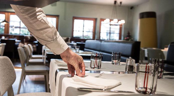 The waiter/waitress will be 'around' – behind you, in front of you and beside you. They'll inquire if everything is ok, fill your water glass, accompany you to the bathroom and replace your napkin before your return. They will also probably clean the crumbs from the table at the end of the meal. If all this sounds like too much attention, consider if you are more comfortable with less 'attentive' service in a more informal environment.