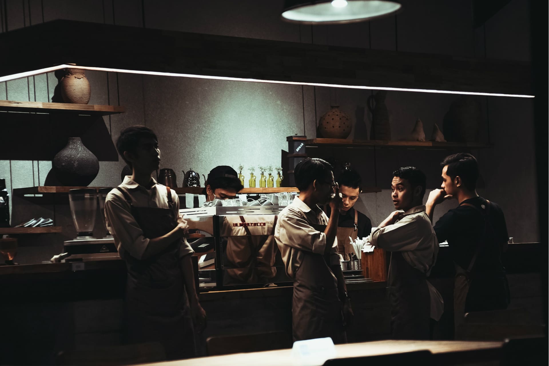 Restaurant staff at the pass.