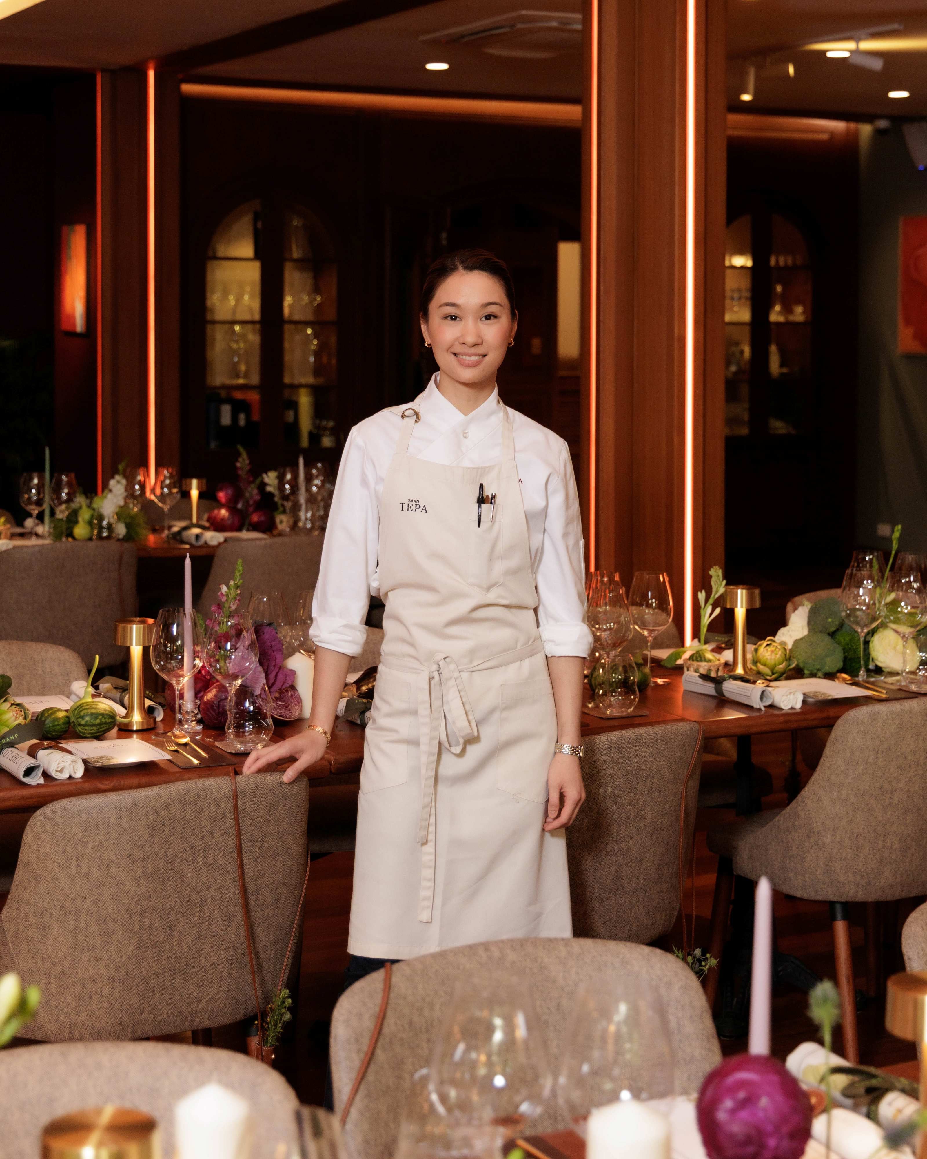 Chudaree ‘Tam’ Debhakam is the chef-owner of two-Michelin-starred Baan Tepa in Bangkok, where her cuisine is based on three pillars: local ingredients, creativity and sustainability. She was the first female Thai chef to head up a two-Michelin-star restaurant and the youngest ever contestant and winner of Top Chef Thailand. Before opening Baan Tepa, she spent two years under chef Dan Barber at Blue Hill at Stone Barns in Upstate New York, which helped shape her farm-to-plate philosophy.