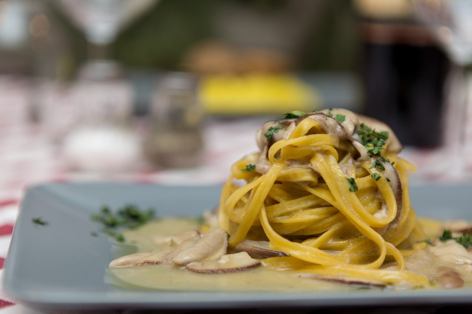 Creamy pasta with crispy mushrooms