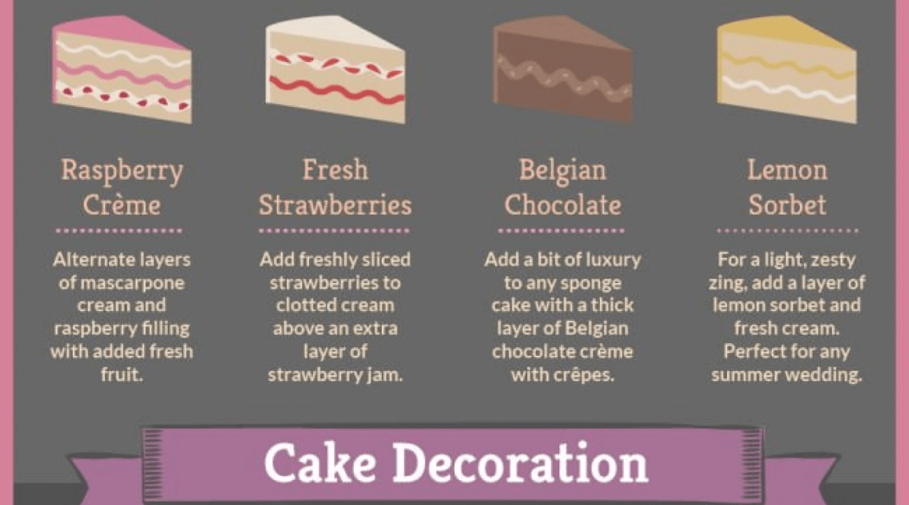 From fillings the infographic also looks at decorations, styles of tier and the all important cake toppers.