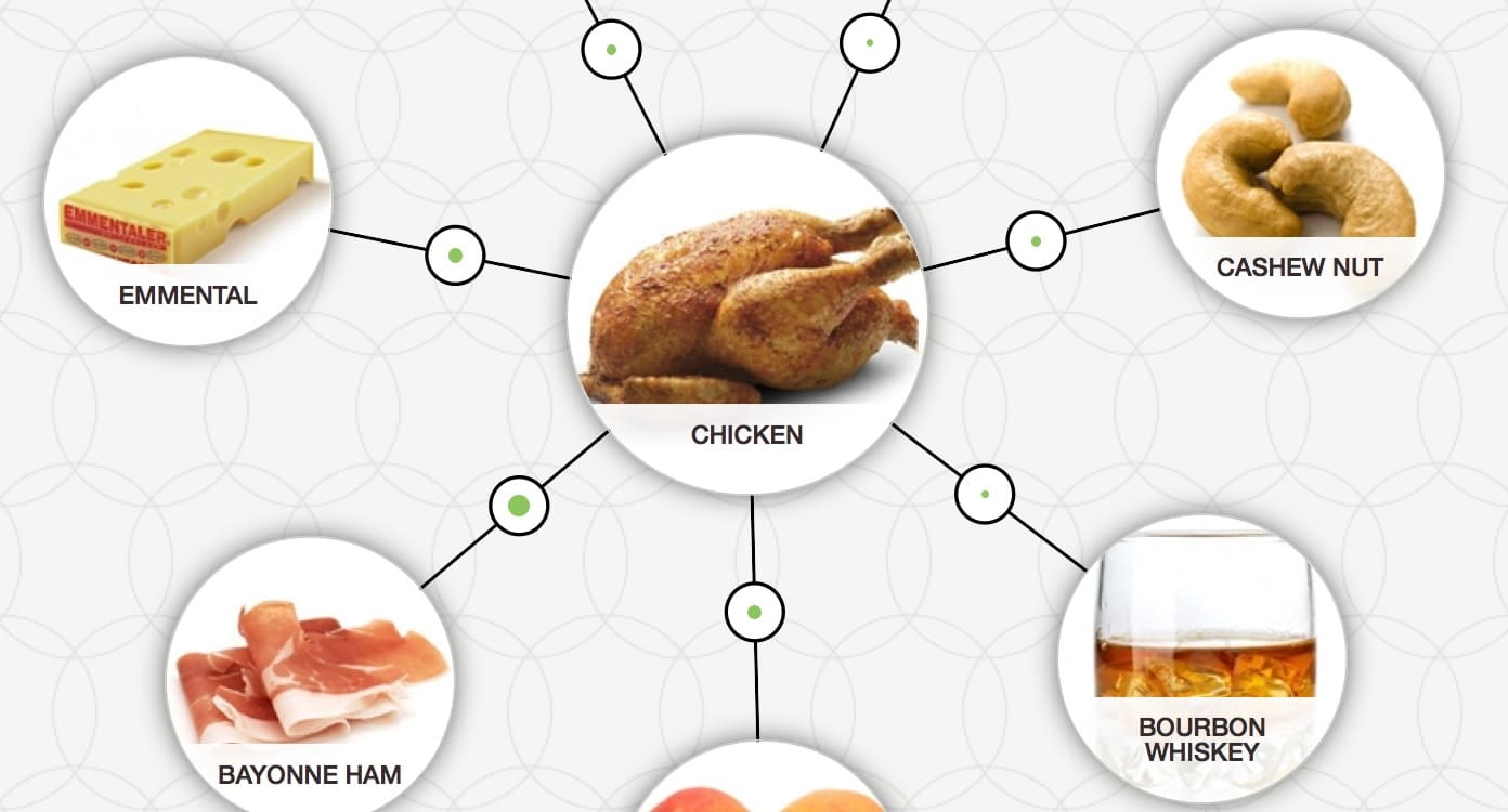 It’s really simple - choose the ingredient you want to start with and the software will start to suggest other ingredients that match well your primary choice. Each time you add another ingredient to the recipe the software takes into account the previous ingredients added and only offers those that match with the flavour profiles already selected. It’s basically flavour bouncing that doesn’t really on the type of knowledge that Grant Achatz displays in the video above.