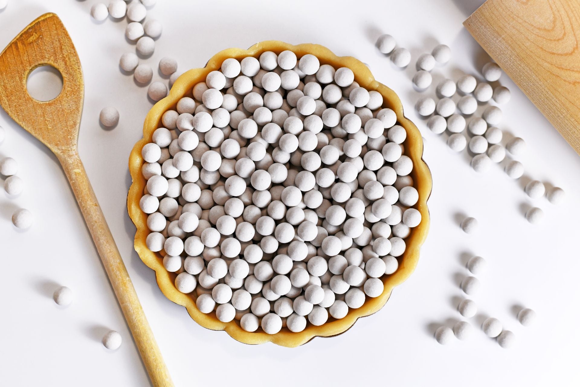 These tiny puck-shaped aluminium beads are perfect for fitting into all those hard-to-fill gaps, making them ideal for smaller pies or those with intricate crimping. Metal is a better conductor of heat than ceramic, so bear in mind that your pastry may cook more quickly if you use metal weights.