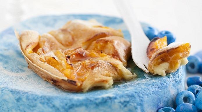 A clafoutis is a French dessert originating in the countryside, more precisely the region of Limousin. It features fruit topped with a sweetened batter. This is baked and enjoyed with cream.