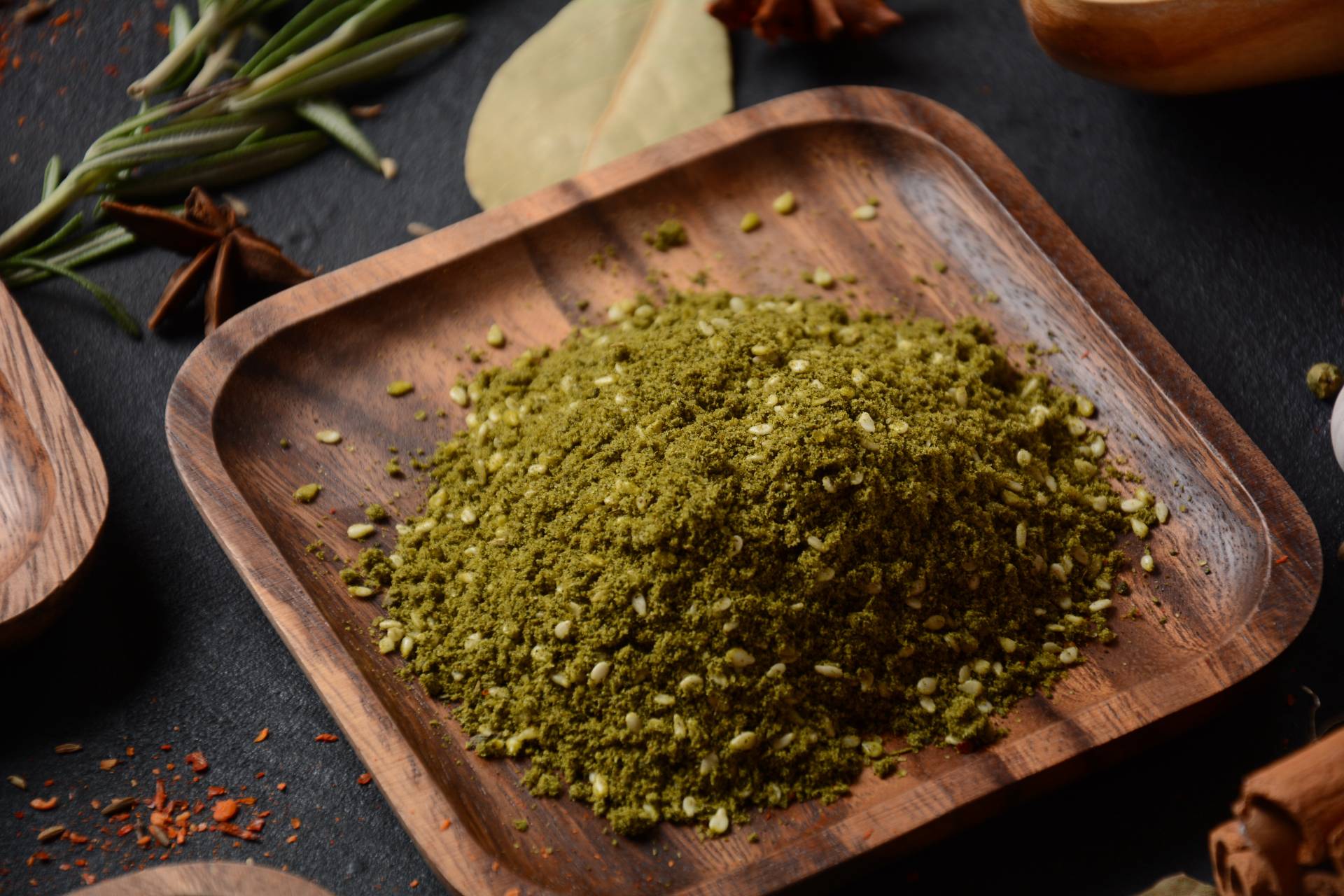 Za’atar is an aromatic Middle Eastern spice mix, made from a combination of ground herbs that varies according to regional specialities and secret family recipes. The name ‘za’atar’ can also be used to refer to various individual herbs commonly included in the mix, but is most strongly associated with the herb origanum syriacum, or Bible hyssop.