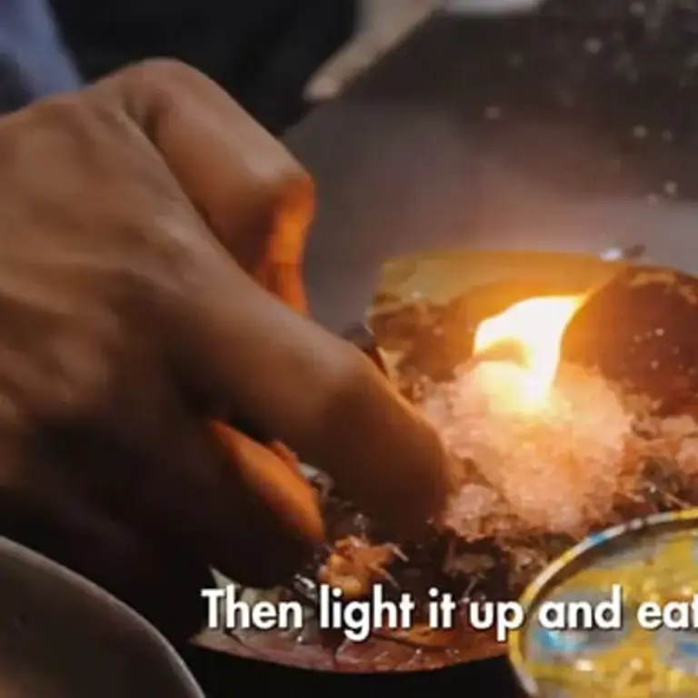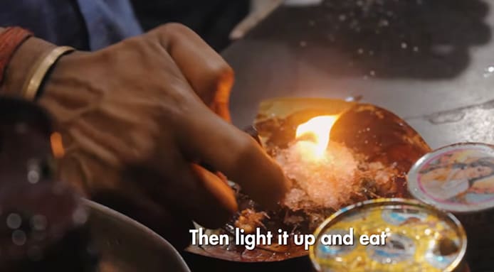 The video below shows a craze that’s popular with street food stalls in India in which people are fed a leaf that’s on fire, directly into their mouth.