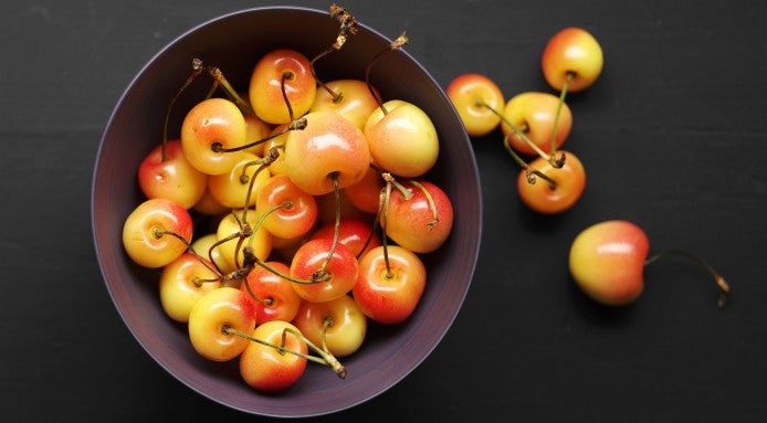 Commonly known as Rainer cherries, we're talking the cream-yellow tinged cherries with a subtle red blush that have a higher level of sun-ripened sugar than some other cherries and deliver an arguably more complex flavour.