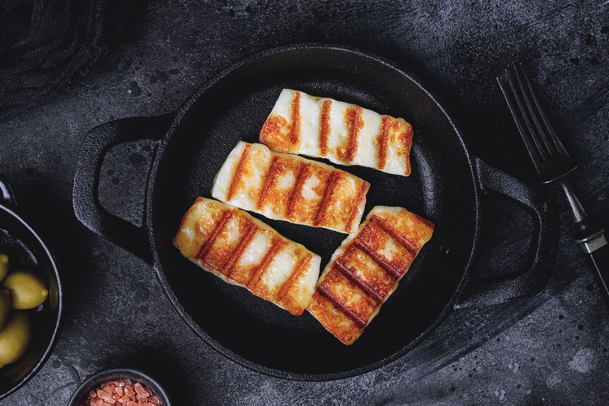 The best things to serve with halloumi include Greek salad, mezze platter (the Middle Eastern tradition of serving appetisers and small plates before or as a meal), pita bread and dips (hummus and tzatziki are both excellent choices), grilled prawn skewers, couscous, and roasted vegetables. Whether raw, fried, or grilled, Cypriot halloumi often accompanies cold beer, wine or Cypriot tequila.