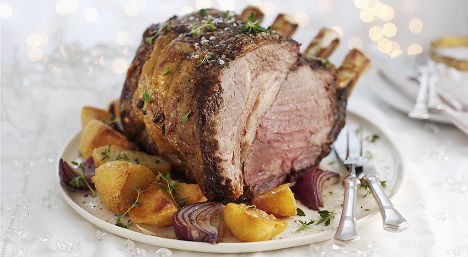 Beef: kg rack of rib-eye, bones shortened