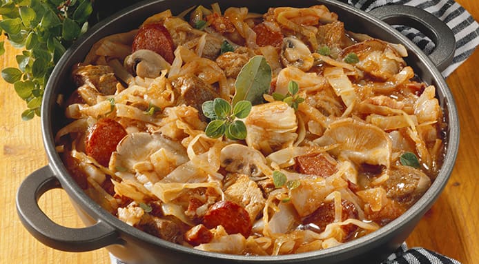 Follow the easy steps below to prepare Bigos at home: this Polish pork and cabbage stew is a comforting and warming dish perfect for winter.