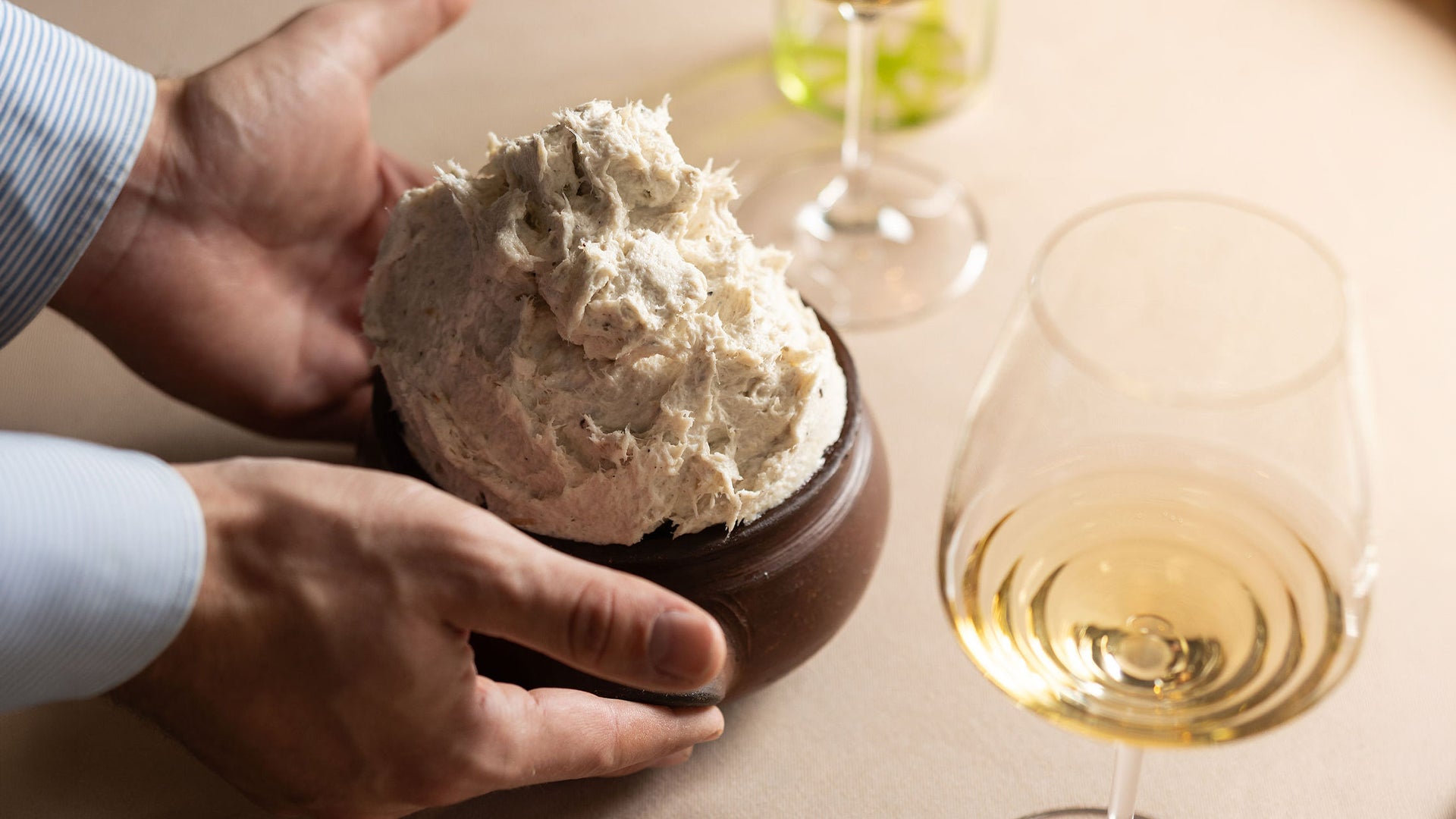 Place the cod at room temperature in a stand mixer to shred it. Gradually add one kilogram of vegetable oil in a thin stream, and occasionally thin it out with a little of the cooking liquid. After about 30 minutes, you will obtain a frothy white cream, to which you should add salt to taste.