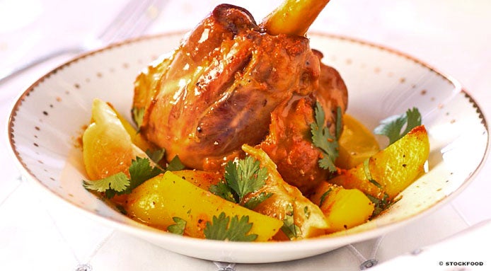 Looking for new lamb recipes? Here is a step-by-step recipe to prepare a knuckle of lamb with saffron potatoes, a tasty main course perfect for meat lovers.