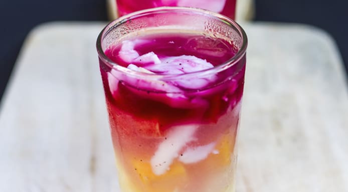Float the beetroot juice on top by pouring it gently over the back of a spoon.