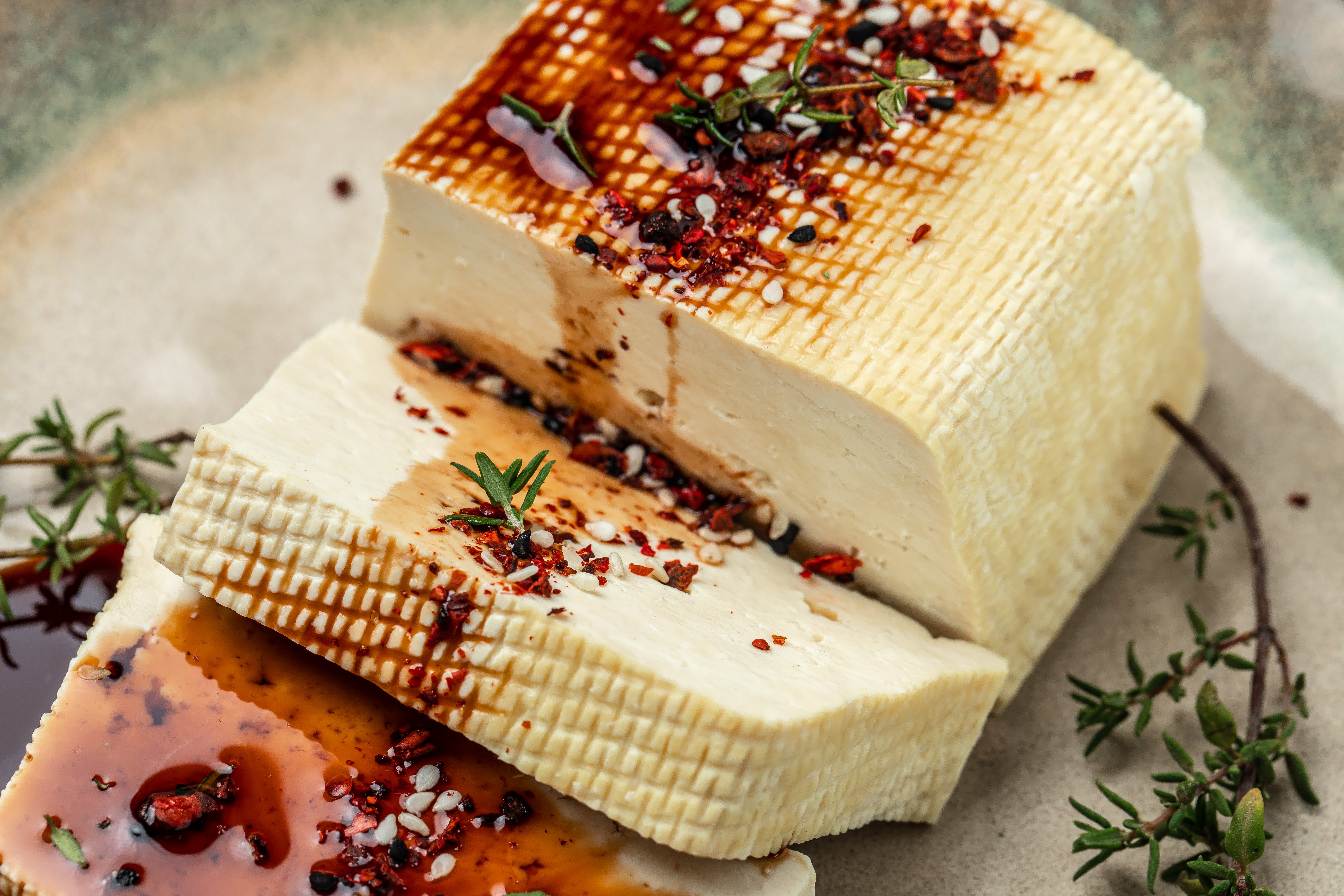For the best marinated tofu you need to ensure the tofu is as dry as it can possibly be. Store-bought options tend to be packaged in water to keep it moist and fresh, but you need to remove as much of this moisture as possible to allow the marinade to absorb into the tofu and infuse the most flavor.