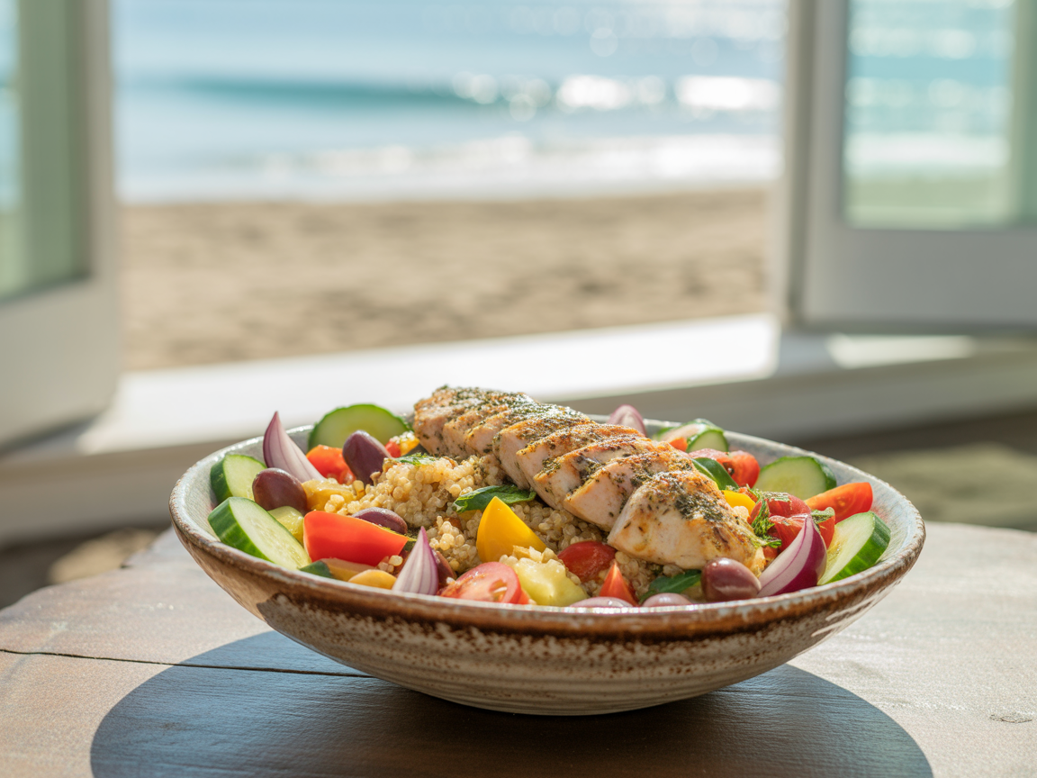 In this recipe, the chicken breast is the lead protein ingredient, but you can easily swap the chicken for another meat, such as lamb, or make a fully plant-based bowl. Chickpeas are a good source of protein and another classic Mediterranean ingredient that can be used in place of the chicken.