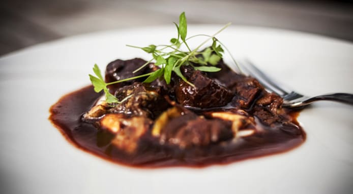Take out the sauce from the ossobuco, add the figs and gorgonzola, roast in the over (190°) for three minutes.