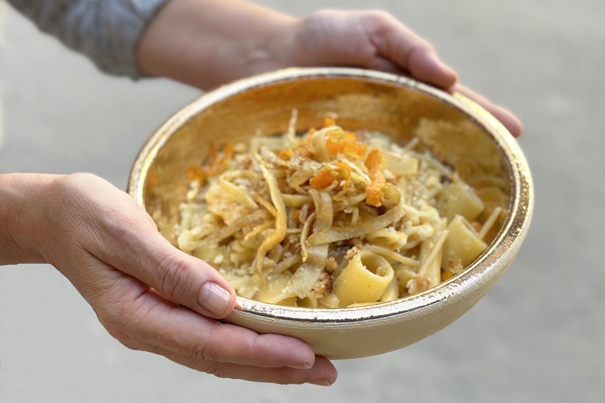 "I chose a traditional Neapolitan dish made mainly with leftovers," she explains. "This version uses vegetable peels and stems, leftover pasta, Parmesan cheese rind and stale bread."