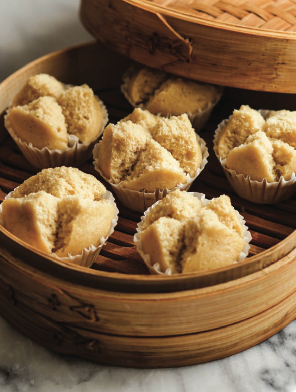 Divide the batter evenly between the moulds, filling each about three-quarters full. Stack the bamboo steamers and cover with a lid. Steam for 15 minutes. Lift the lid, remove the steamers, and allow the cupcakes to cool for 5 minutes. Serve warm or at room temperature.