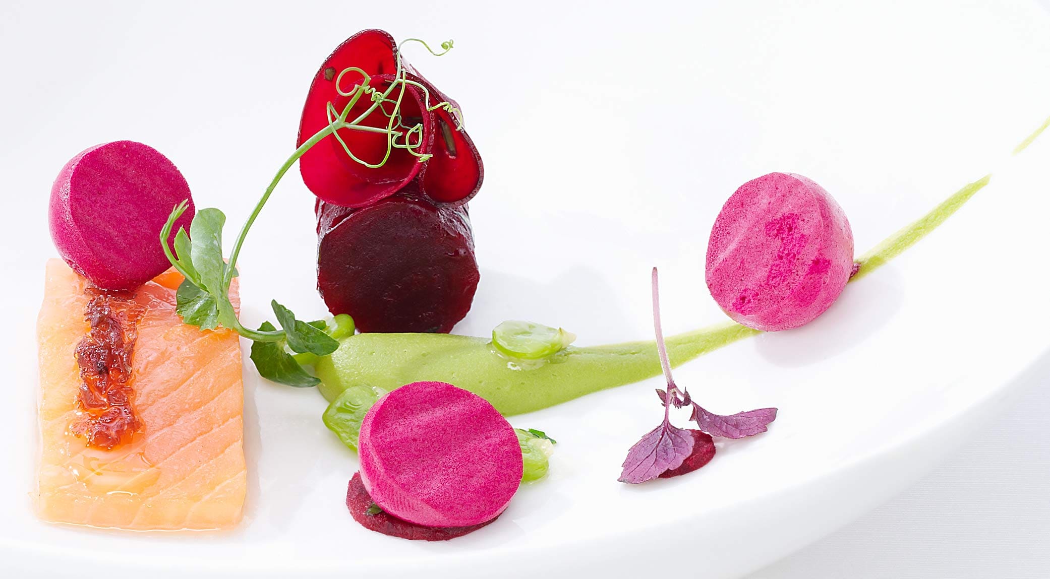 Seared Brook Trout With Beets And Peas by Andreas Caminada