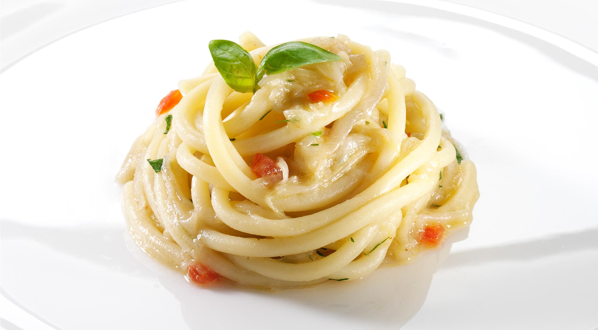 An exclusive Italian recipe shared by Aimo Moroni, chef at Il Luogo di Aimo e Nadia starred restaurant: a spaghetti dish made with Italian ingredients