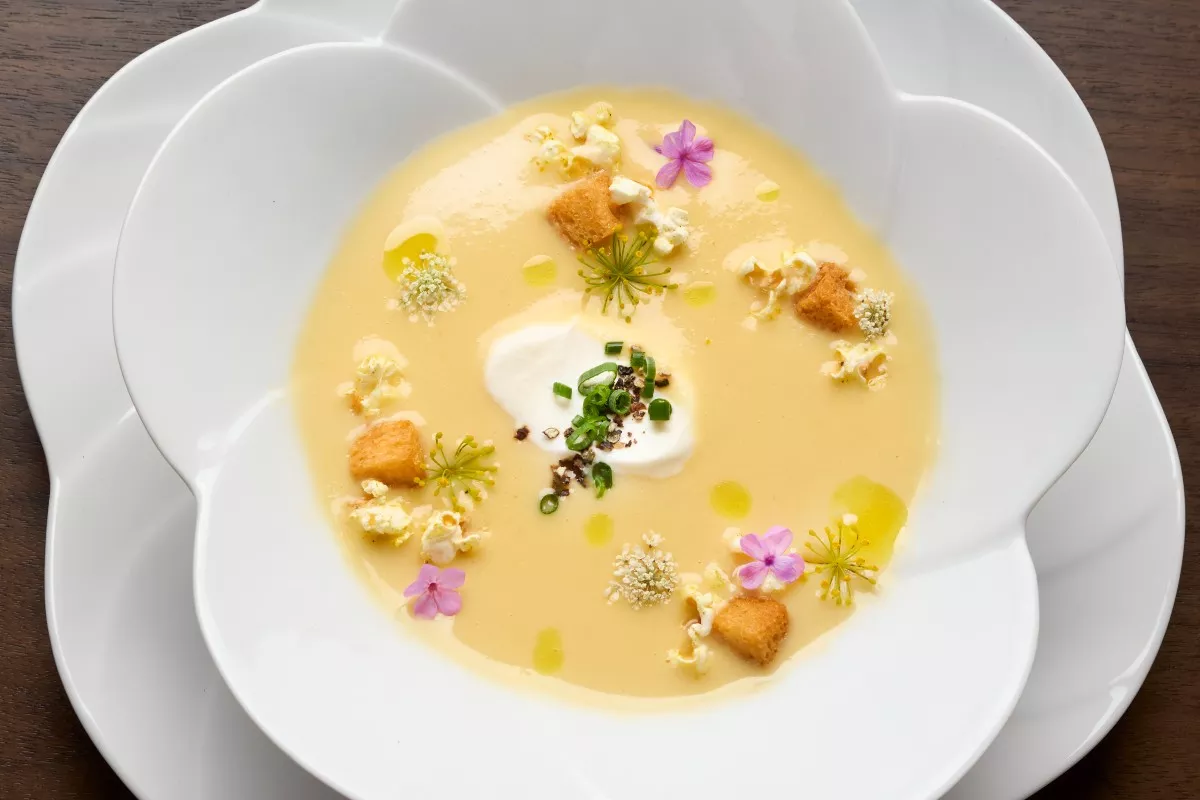 This simple velouté recipe from chef Mitsunobu Nagae of l'abeille is the perfect way to showcase delicious summer corn.
