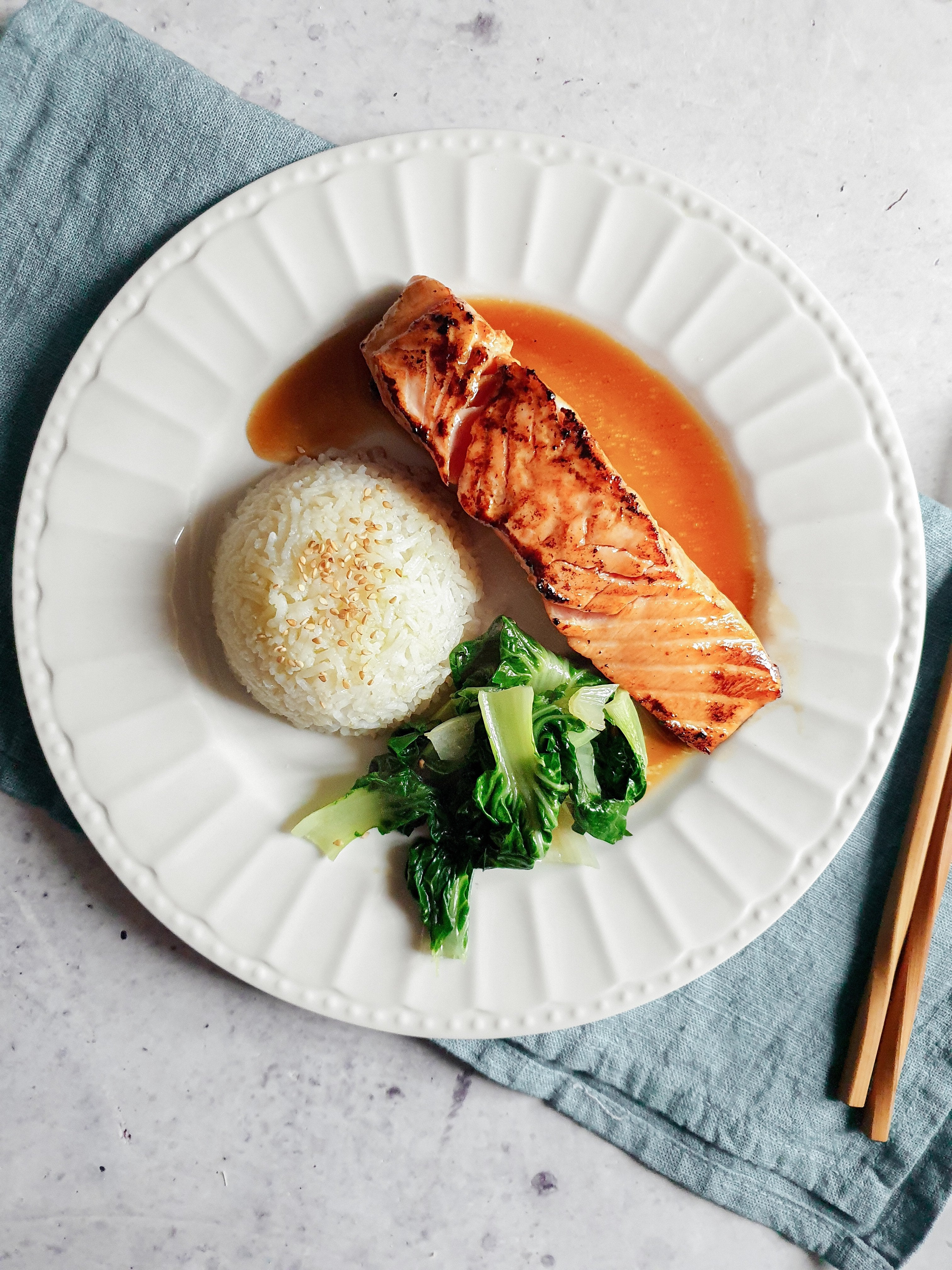 Teriyaki Salmon with Pak Choi and Basmati Rice