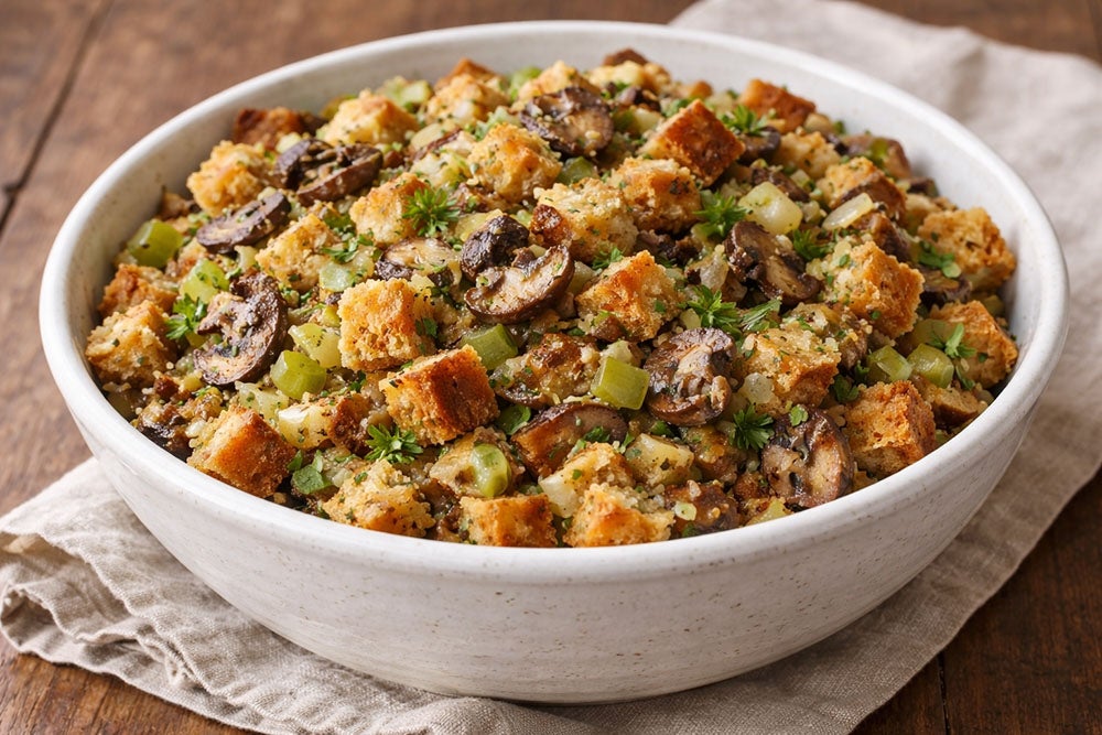 If you’re making this vegan stuffing for Thanksgiving, take a look at our selection of the 10 most popular Thanksgiving dishes to enjoy with your stuffing, including holiday favorites such as sweet potato casserole.