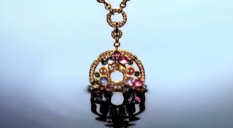 The yellow gold necklace, embellished by brilliant cut diamonds, turquoises, amethysts and cabochon emeralds is a unique piece that evokes the 1960s Bulgari style. The necklace was part of the collection belonging to Lyn Revson, the wife of the founder of Revlon cosmetics, Charles Revson, it’s a piece that expresses uniqueness, refinement and impeccable style.
